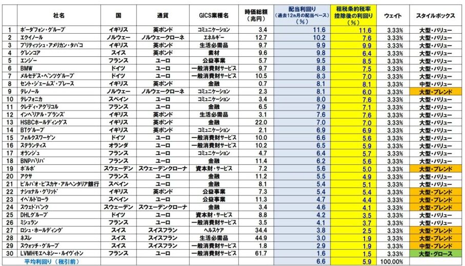 SBI欧州高配当株式(分配)ファンドの組入銘柄に「VOD」「BTI」「HSBC」「NGG」がランクイン