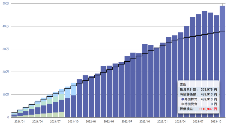 iDeCo開始から2年11ヶ月が経過した2023年11月時点の運用成績は以下のとおりです。