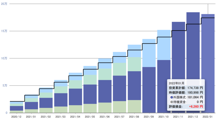 iDeCo開始から1年1か月後の2022年1月時点の評価損益はプラス6,260円でした。