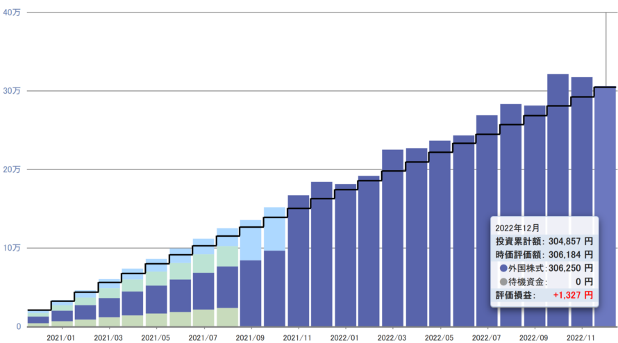 iDeCo開始から2年後の2022年12月時点の評価損益はプラス1,327円でした。