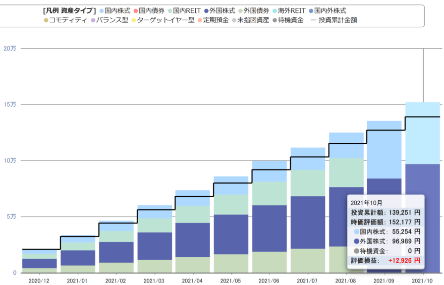 iDeCo開始から10か月後の2021年10月時点の評価損益はプラス12,926円でした。