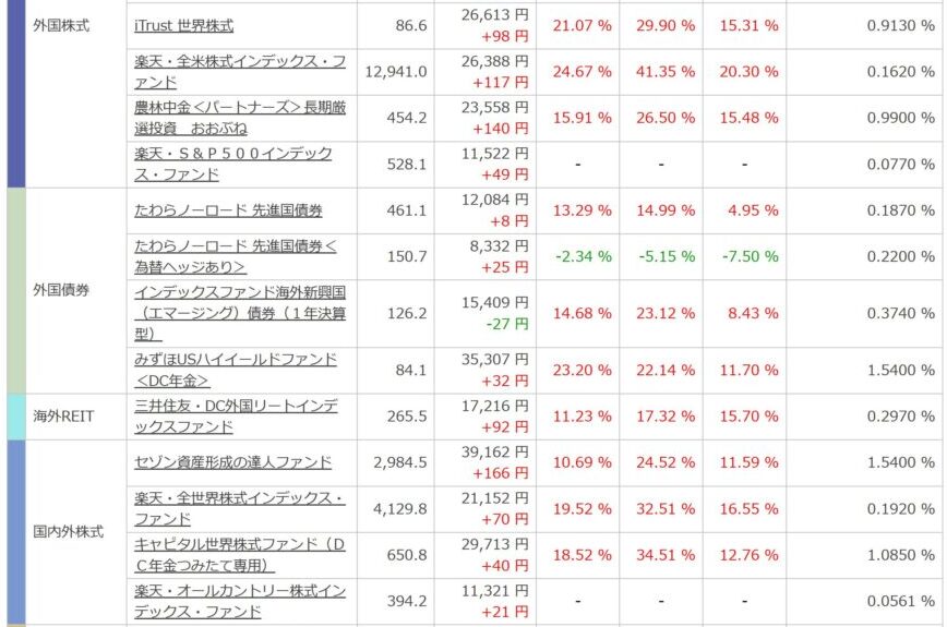 最初はリバランス(残高調整)だけにするつもりだったのですが、保有資産の値動きを約1年間見てきた中で、iDeCoは長期間資金拘束される(60歳以上でなければ売却できない)ので、「安定性より上昇率(リスクをとる)」と「信託報酬を安く抑える」の2点を重視して投資銘柄を選びなおすことにしたのです。