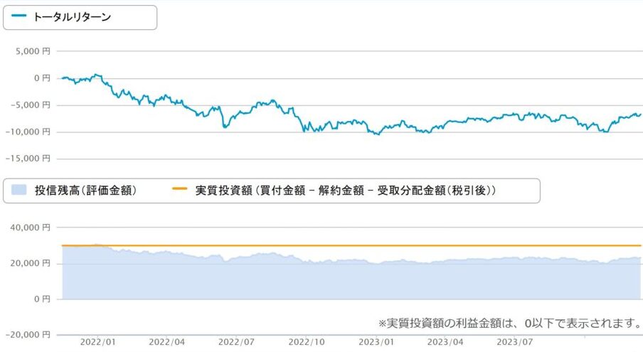 その後、利上げ停止予測から上昇局面に戻っても、USA360の評価金額は回復が遅く、結局元本割れのまま検証期間を終了しました。