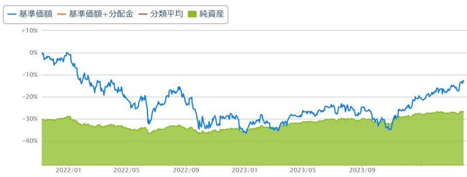同じように考える方が多いのか、基準価格が低迷していた2023年、USA360の純資産額がじわじわと増えていることが下図からわかります。